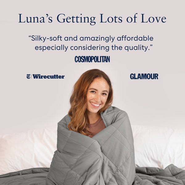 Breathable, soft fabrics–coupled with our patented airflow channels and unique glass sand– makes Luna the best weighted blanket on the block. Choose weight and color options to select your favorite blanket.