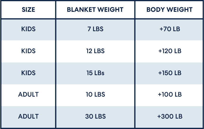 We recommend selecting a weighted blanket weight that is about 10% of your body weight. If you're unsure or between two weights, go with the lighter option.